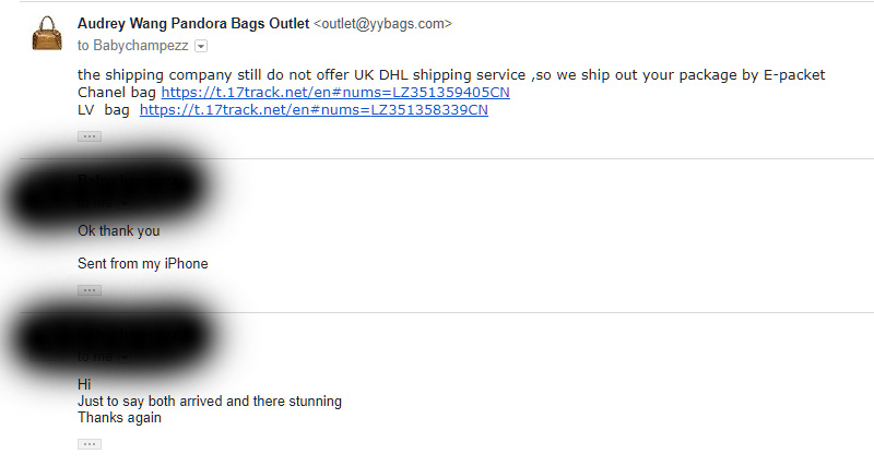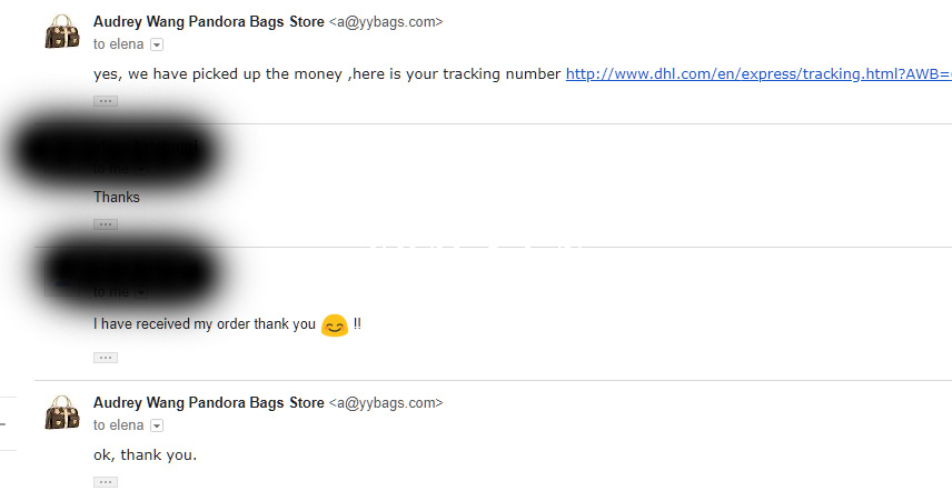 Been wanting a purse and have tried with other companies and they turned out to be a scam. I gave it one more shot and ordered from Pandora Bag and i actually received the purse and i love it. They even offered a free gift with it. They also touched base with me the whole process and made sure i received the bag. I will be ordering more from them.