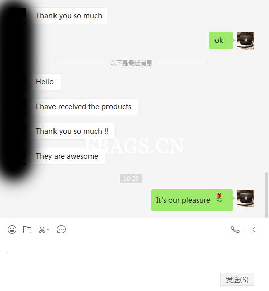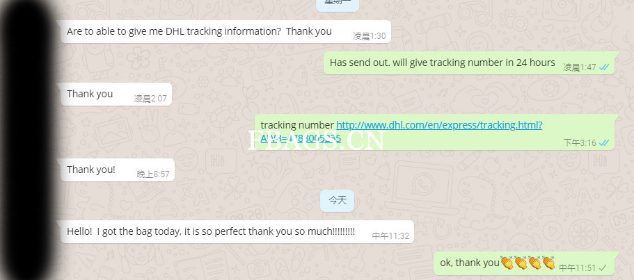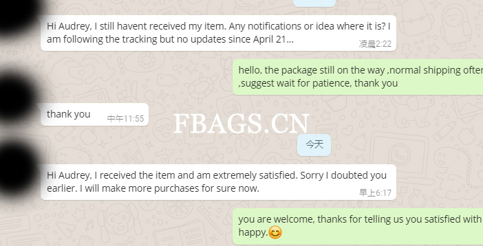 Pandora Bag without a doubt has the BEST customer service EVER!!!!!!! They are so nice and so committed to making their customers are 100% satisfied. They go the EXTRA length to make sure every detail of the transaction is perfect; they even follow up with a phone call and or an email just to make sure they reach you. I've had the best experience with Pandora Bag and look forward to doing more business with them.