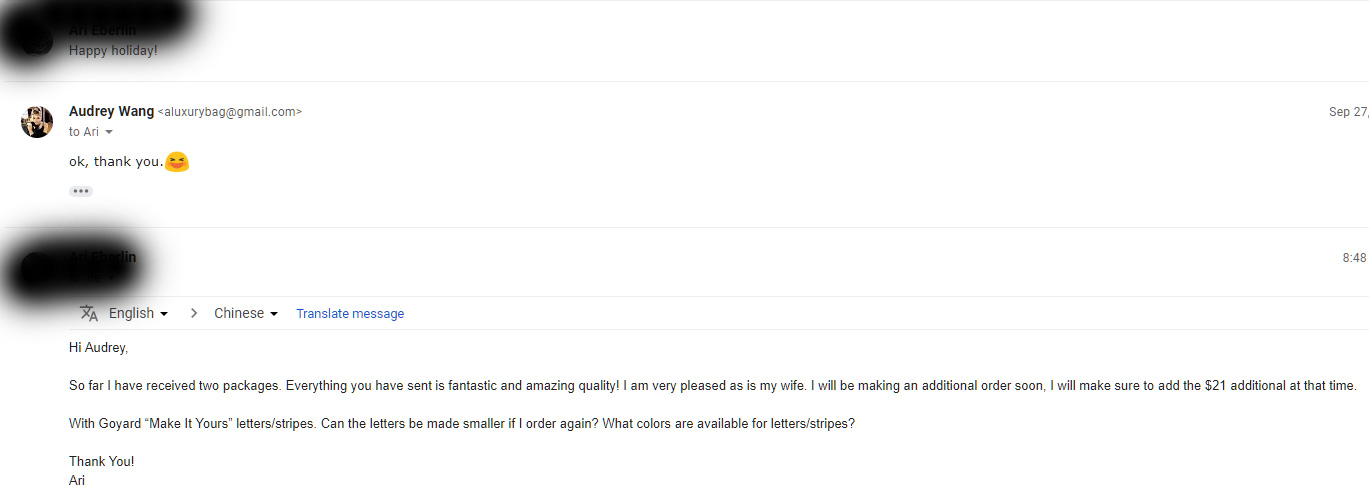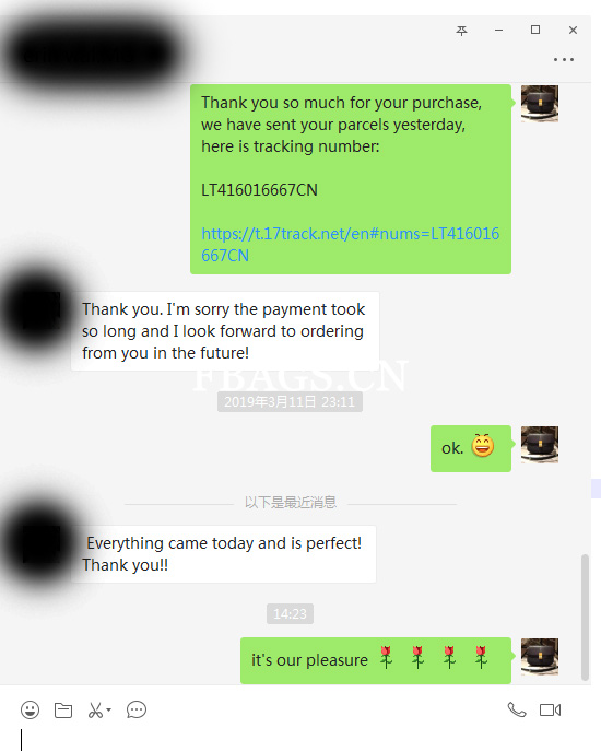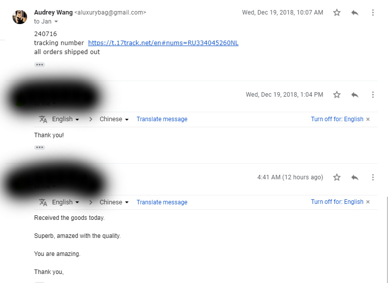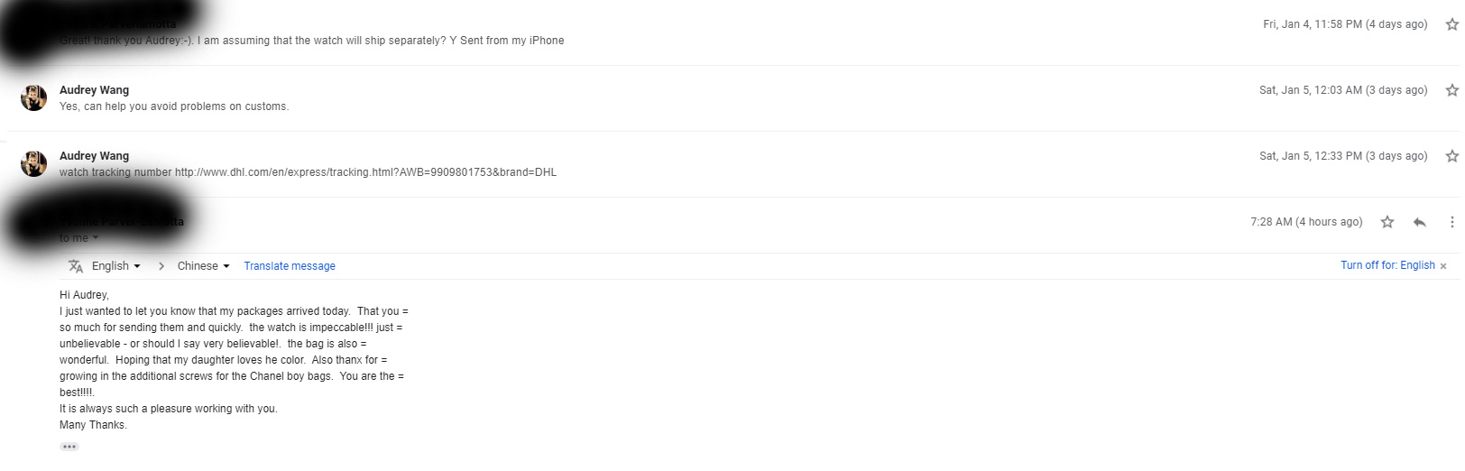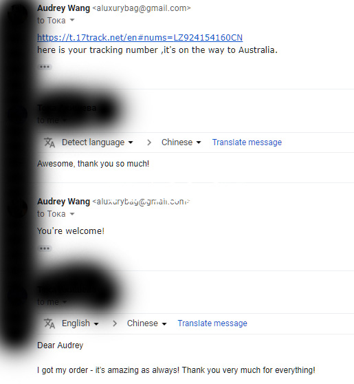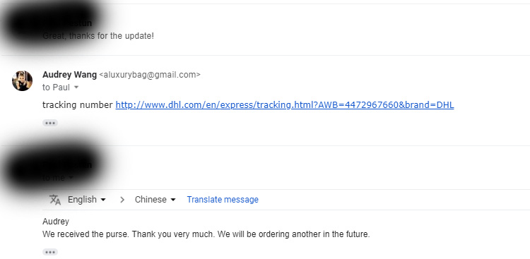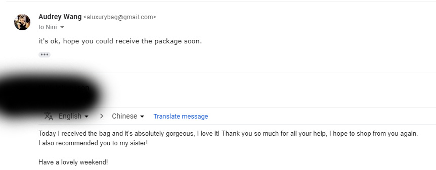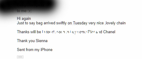 This is how a customer's designer handbag purchase should be handled. And this was only a purchase of $500! I will definitely be purchasing more of my handbags from you.