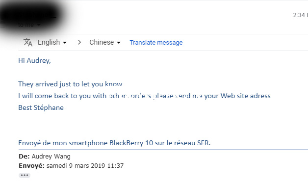 I confirm you that I received the parcel last Friday. The merchandise was as expected and the delivery faster than announced.
